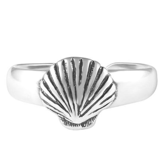 シンプルなフリーサイズのシルバーリングに砂浜に似合うビーナスの貝殻をデザインした可愛い足の指輪トーリング。