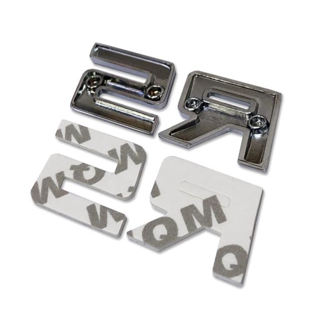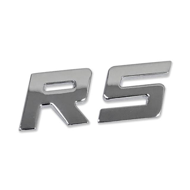 高級感のあるメタリックシルバーと立体成型が目を引く、金属製エンブレム文字「RS」セットです。