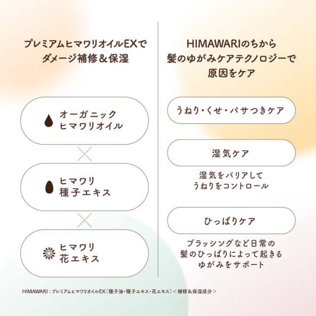 ●補修&保湿成分「プレミアムヒマワリオイルEX*1」配合。髪内部にうるおいを与え、髪の外側のキューティクルのはがれをコートします。
