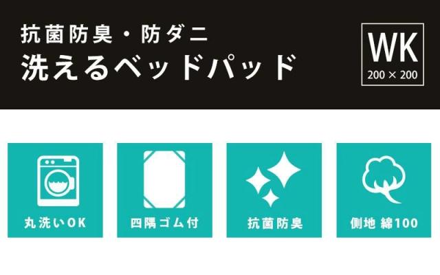 ベッドパッド 敷きパッド ワイドキング 約200×200cm 厚み約2cm 日本製 テイジン マイティトップ2 (R)ECO 防ダニ 抗菌 防臭 洗える