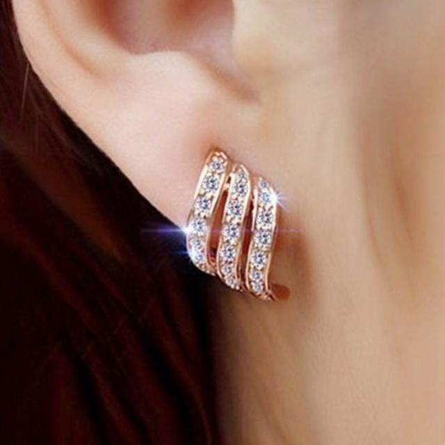 クリスタルトリプルレイヤーイヤリング(1ペア) 両耳 ジルコニア ラインストーン レディース イヤーカフ イヤークリップ はさむ 挟む 結婚式 発表会 パーティ プレゼント ギフト ノンホールピアス お返し ホワイトデー クリスマス ゴールド 金色 金メッキ 3連風 綺麗