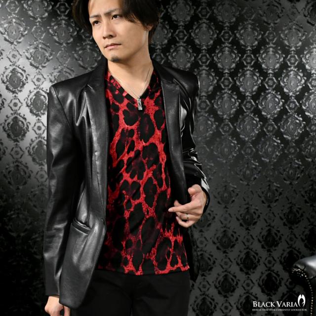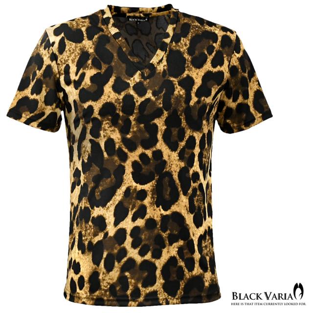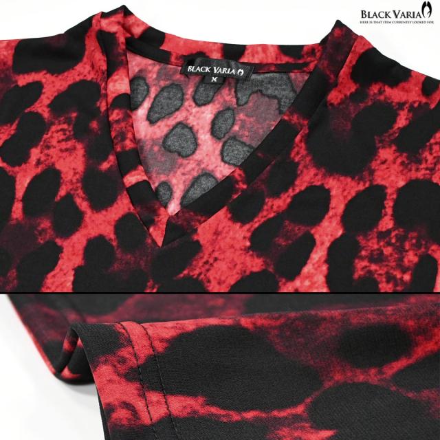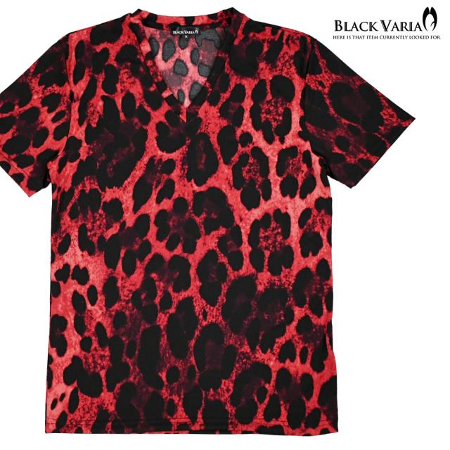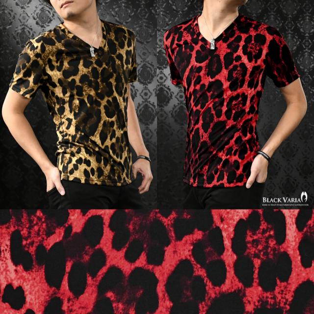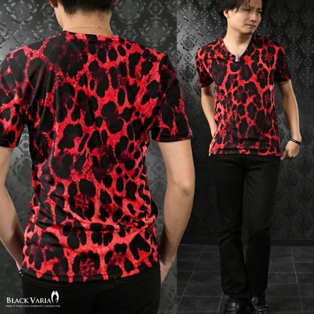 メール便可/一枚まで Tシャツ 半袖 Vネック ヒョウ柄 豹 レオパード メンズ 日本製 派手 ストレッチ(レッド赤ブラック黒) 183704