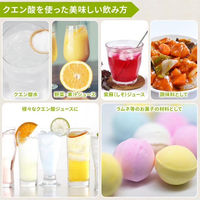 食品添加物(食品)なので、クエン酸ジュースやしそジュース、その他お料理にご使用頂けます。