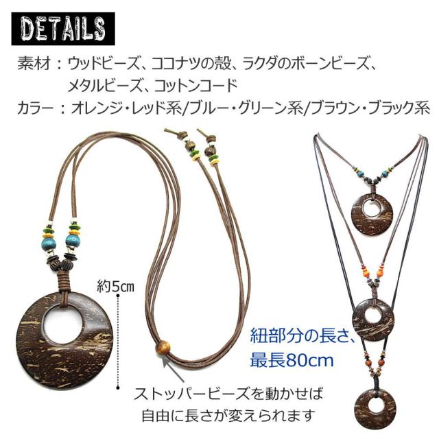 ネックレス アクセサリー エスニック オリジナル ハンドメイド ココナツリング ラクダのボーンビーズ ウッドビーズ レディース プレゼント 贈り物 メール便 n-l064