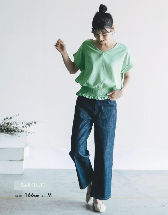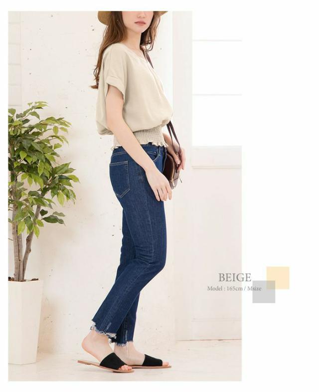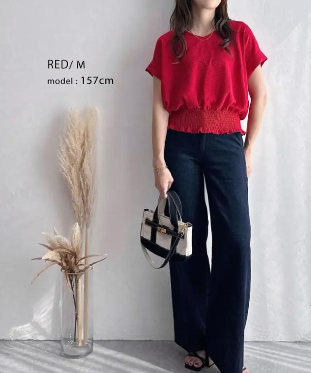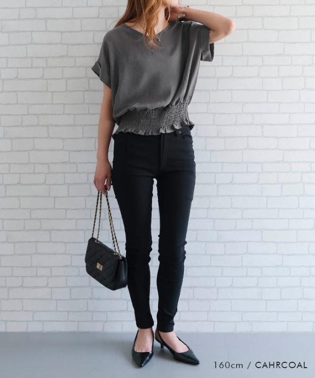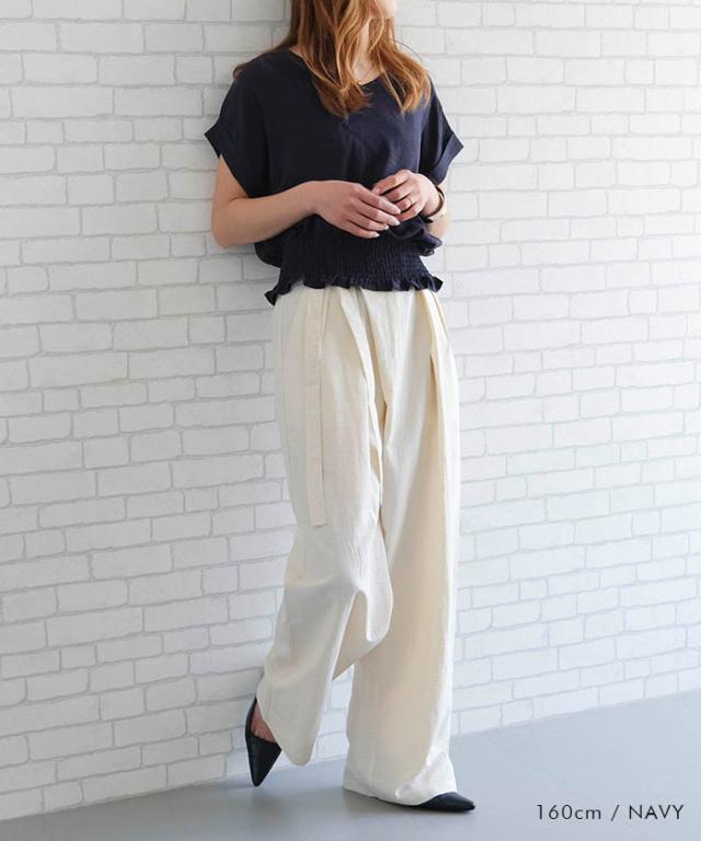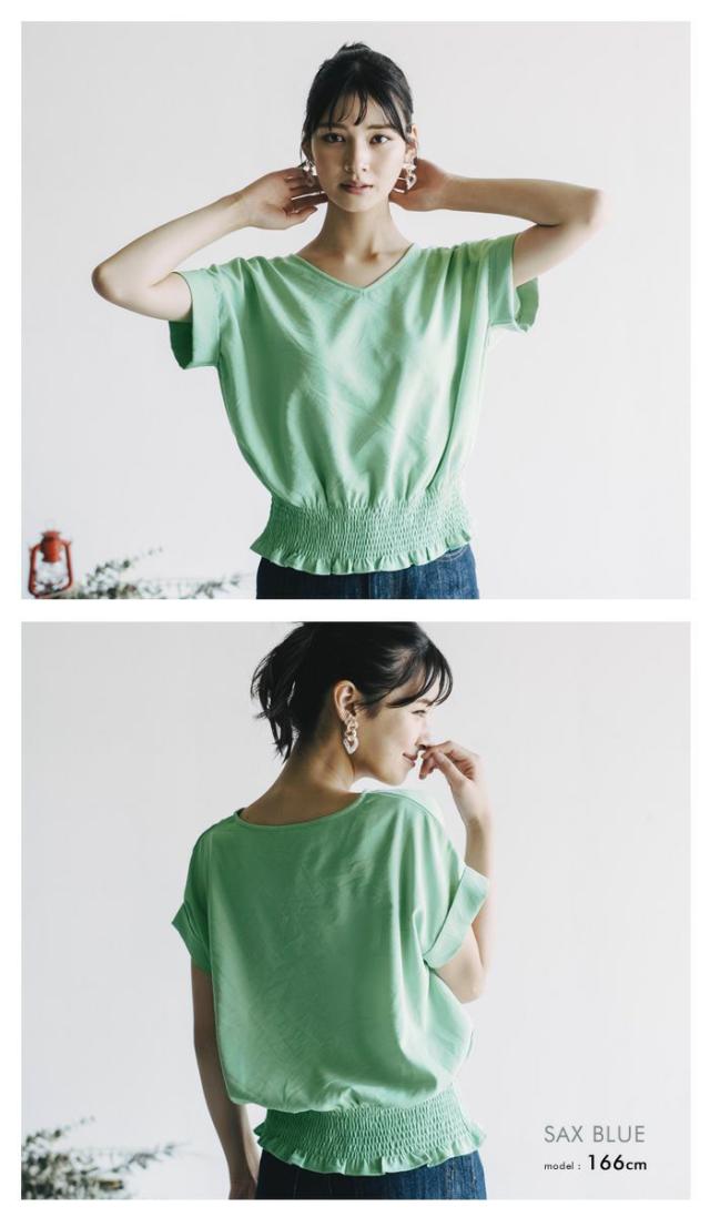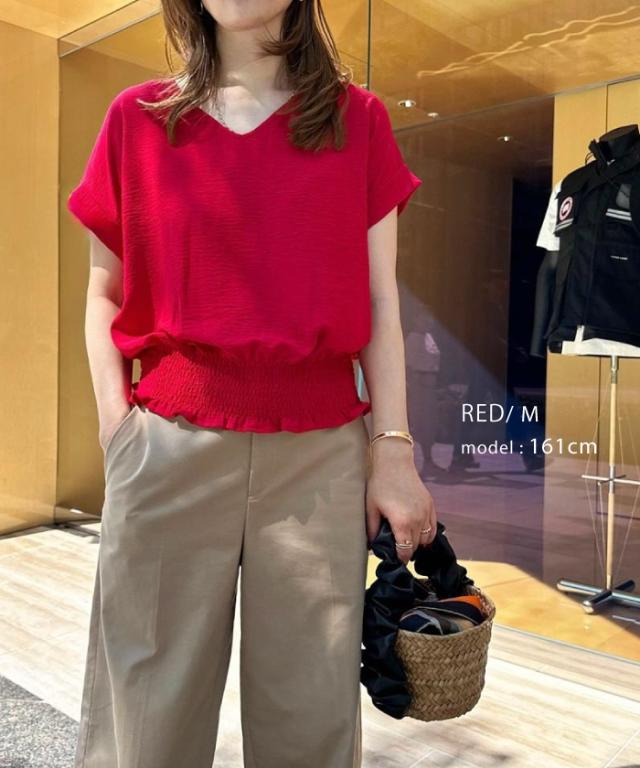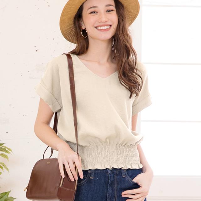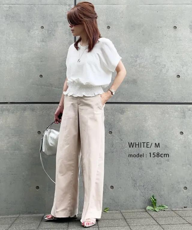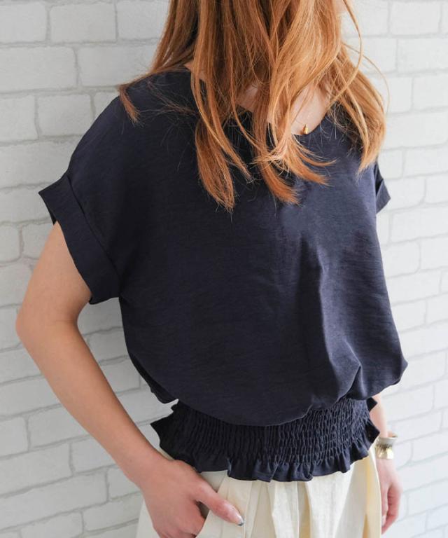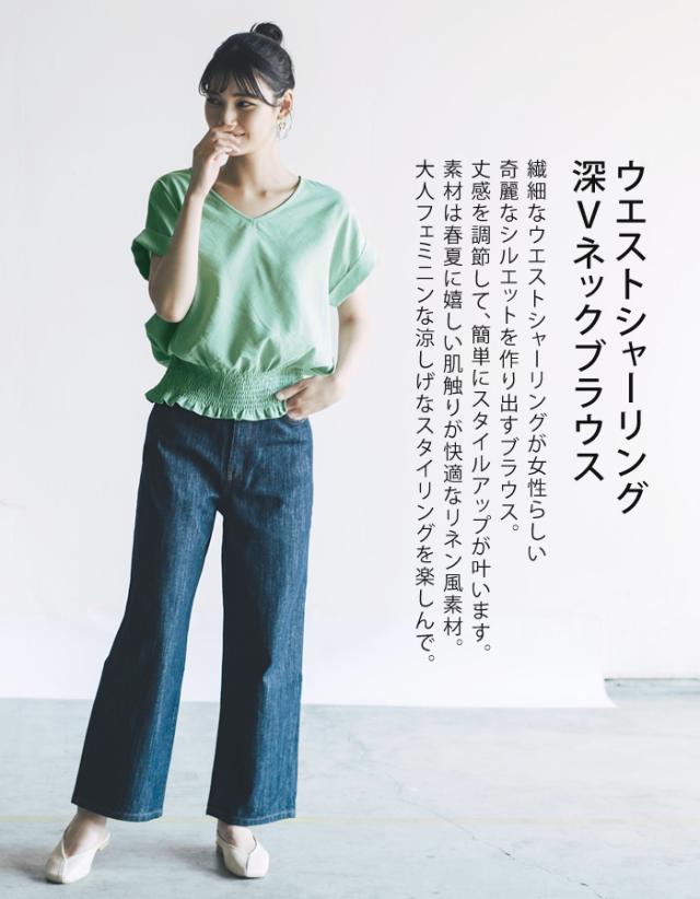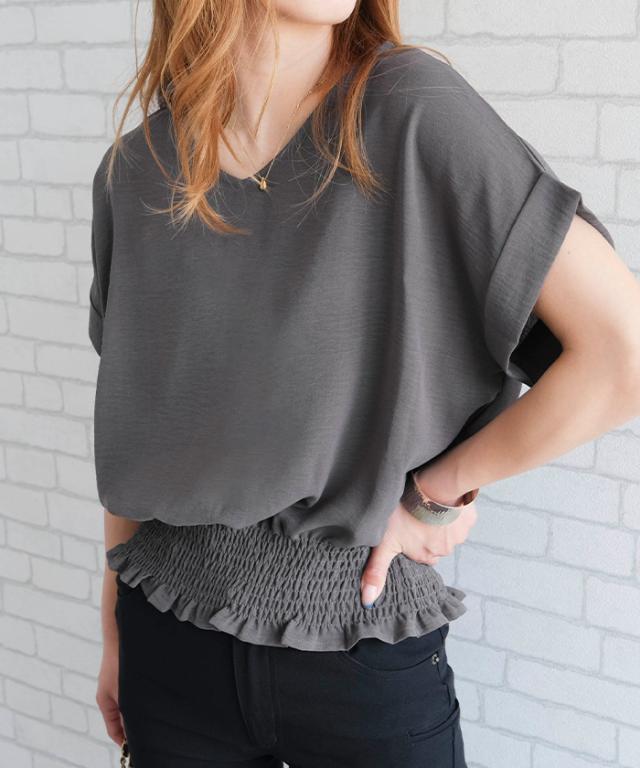 繊細なウエストシャーリングが女性らしいきれいなシルエットを作り出すブラウス。