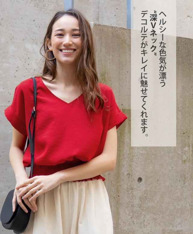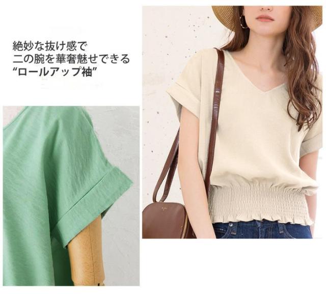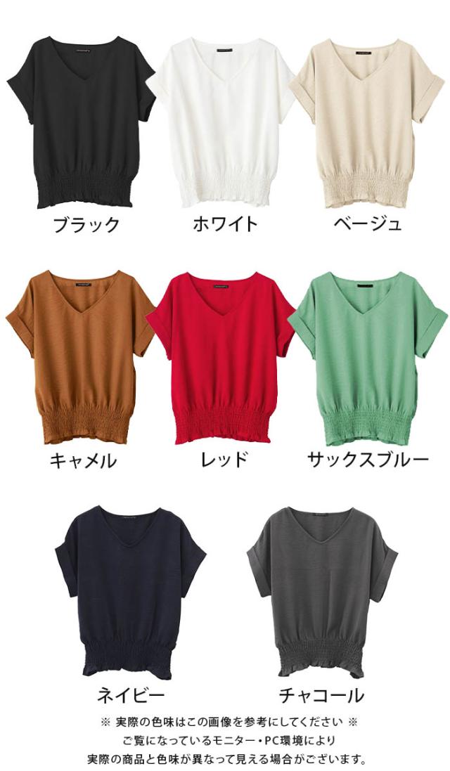 送料無料 ウエストシャーリング深Vネックブラウス レディース ブラック ホワイト M L ≪ゆうメール便配送20・代引不可≫