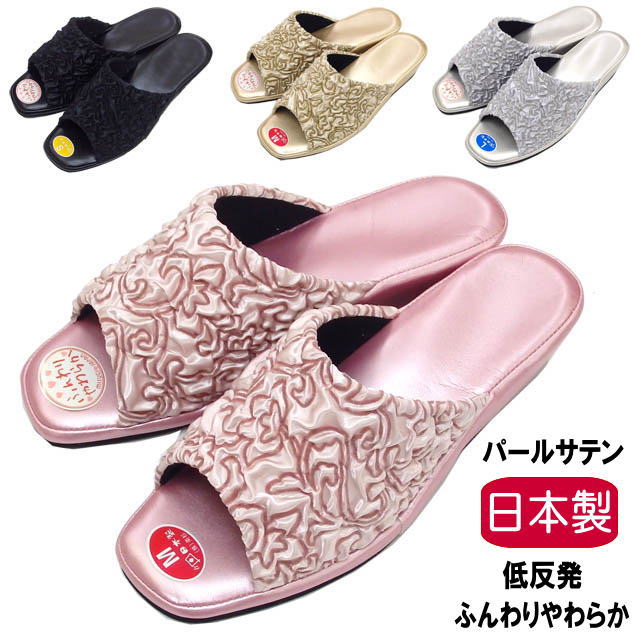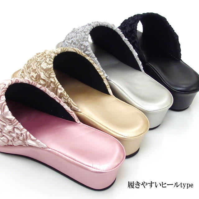 【在庫一掃★ラスト1点】 スリッパ パールサテン フットペット ヒール 前あき お部屋履き ルームシューズ 入学式 卒業式 参観日 S M L レディース