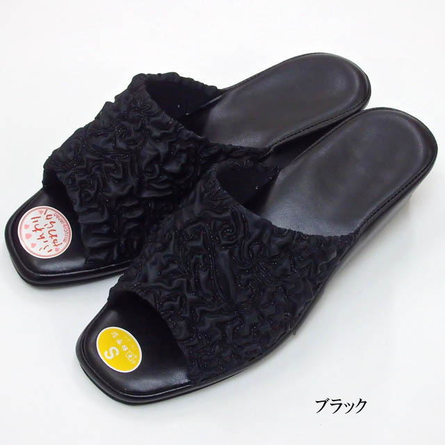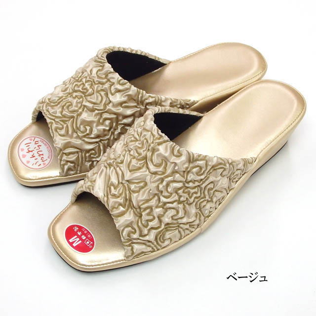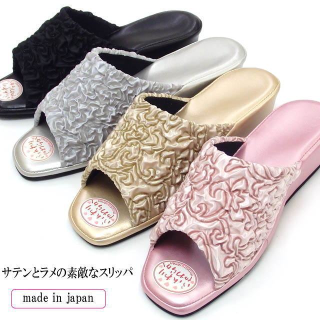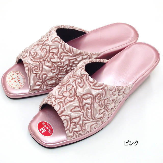 サテン生地に立体感のある模様が素敵な 高級感のあるスリッパです。