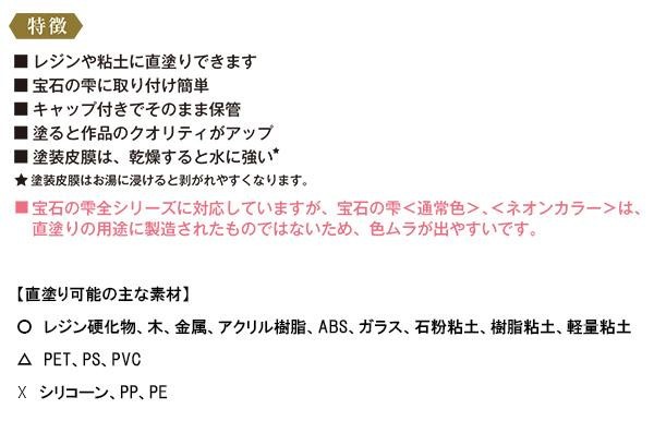 商品概要:レジン専用着色剤「宝石の雫」専用の直塗り用アタッチメント。