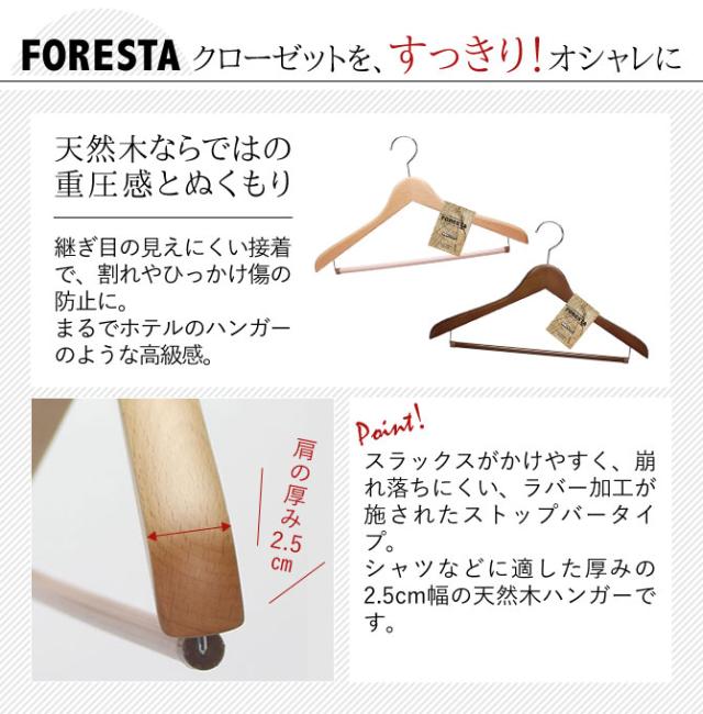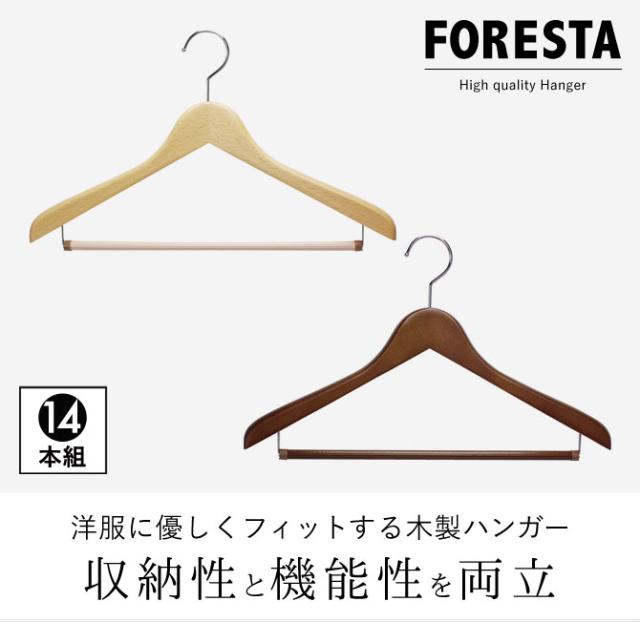 ハンガー セット まとめ買い 木製ハンガー 天然木 木製 木 スリム 回転 フック Yシャツ ワイシャツ ブラウス Tシャツ シャツ ポロシャツ トップス カットソー キャミソール クローゼット 収納 整理 服 フォレスタ 25S 14本組