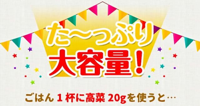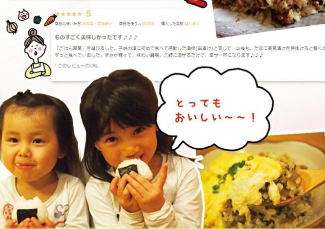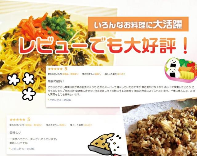 - 高菜炒飯を作ってみたら、普段は口にしない主人がガツガツ食べていました。とても美味しかったです。お茶漬けも楽しみです。