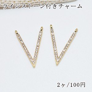 ラインストーン付きチャーム V字スティック 2カン付 ゴールド【2ヶ】