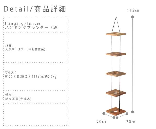HangingPlanter ハンギングプランター 5段 (壁面収納 プランター 植物 小物収納 カントリー 天然木 カフェ 壁掛け)