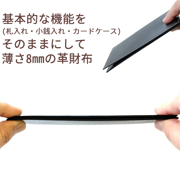 基本的な機能(札入れ・小銭入れ・カードケース)をそのままにして薄さ8mmの革財布スマートウォレットシリーズが登場。