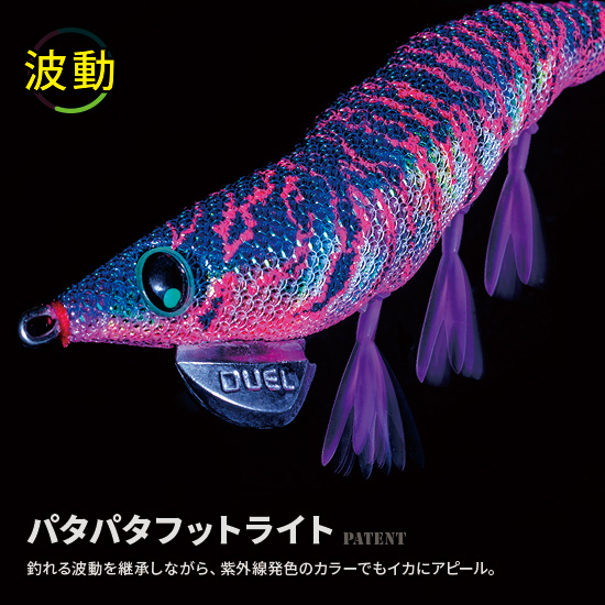 | 商品情報 | デュエル ヨーズリ EZ-Q ダートマスター ラトル DUEL YO-ZURI / 餌木 エギ エギング アオリイカ 待望の3.5号サイズも登場! 軽快ダートはそのままに「波動」「色」「音」のトリプルアピールで、大型イカに強烈アピール!!! ◆ 色 COLOR EZ-Qシリーズ史上、最強アピールの色と柄!! ◆ 音 SOUND アピール抜群のエビ音搭載!! ◆ 波動 WAVE パタパタフットライトの釣れる波動でアピール!! ●重量:19g ●沈下速度:約3.2秒/m ■発売年:2019年 |