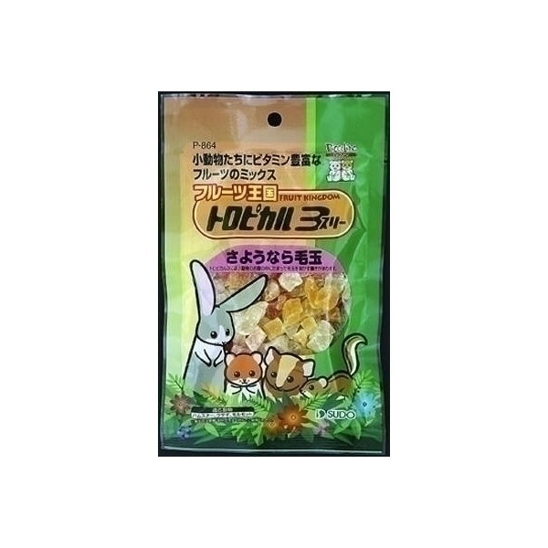 マンゴー、パパイヤ、パインと新鮮な3種類の南国フルーツを乾燥加工したバラエティ豊かな小動物のおやつです。豊富なビタミン、繊維質、糖質はもとより、パイン、パパイヤに含まれる酵素には消化を助けたり、お腹の中にたまった毛玉を溶かす働きがあります。
