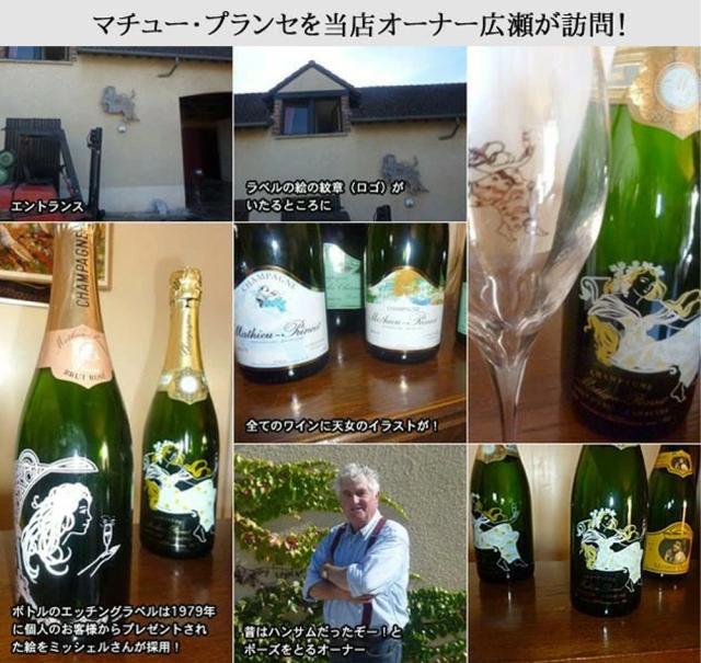 「マチュー・プランセ」は、「マルイユ・シュル・アイ」の東隣村、格付け95%の「ビスイユ」出身のミッシェル・マチューと、「アヴィーズ」の西隣村で同じく格付け95%の「グローヴ」出身のフランソワーズ・プランセが結婚して、1969年に誕生したRMです。この2つの村の畑はいずれも、ブラン・ド・ブランにとって最高の土壌たる白亜(石灰)質土壌ですが、それでもアイ周辺の前者の畑と、コート・デ・ブランの後者の畑ではテロワールがかなり異なり、「2大白亜質産地」として、双方が最上と目されています。