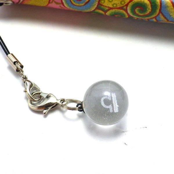 レーザー加工で出来た星座別のマークが入った人工水晶球ストラップです。