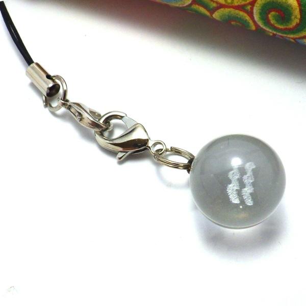 レーザー加工で出来た星座別のマークが入った人工水晶球ストラップです。