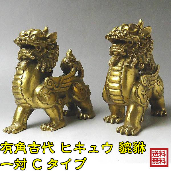 貔貅 ヒキュウ 金運 置物 金運アップグッズ 金運グッズ 風水 風水置物 風水インテリア 風水グッズ 銅製品 龍の置物 宝くじ 2026 (銅製有角古代 ヒキュウ 貔貅一対Cタイプ)