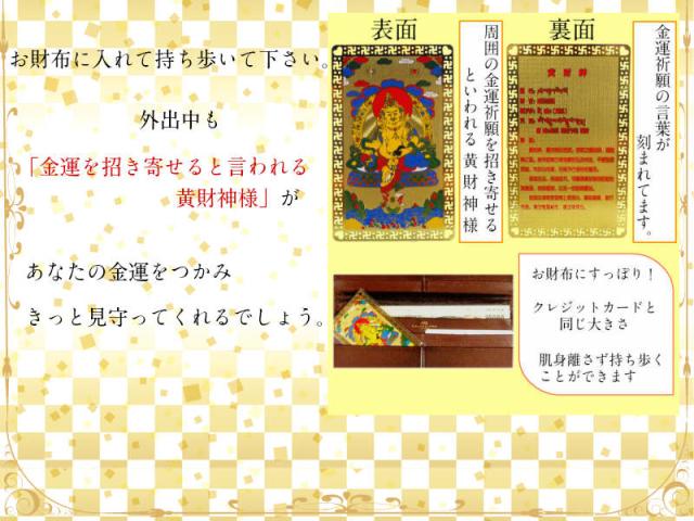 お財布に入れて持ち歩いて下さい。外出中も「財運の神様」があなたをきっと見守ってくれるでしょう。