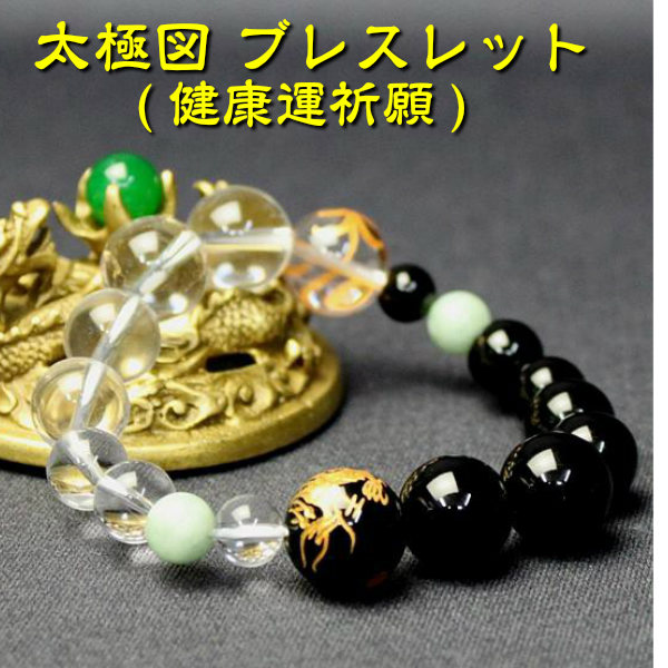 風水ブレスレット 太極図 ブレスレット ( 健康運祈願 ) ●石の意味カード付き 風水 青龍 朱雀 彫り 天然石 パワーストーン 天然石アクセサリーパワーストーン ブレスレット メンズ 送料無料