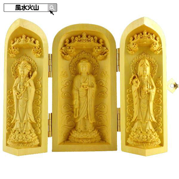 【3/26 9:59迄!ポイント10%】 送料無料 風水グッズ つげ 阿弥陀三尊厨子 風水 仏像 千手観音様 厨子 縁起物 置物 飾り物 開運祈願 風水