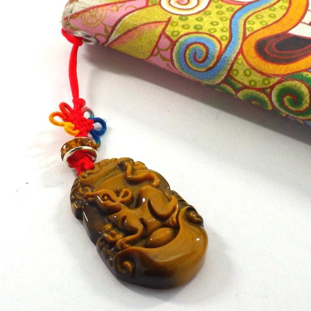高品質なタイガーアイに、金運祈願アップの元宝の上に乗った干支の子(ねずみ)が彫刻されたストラップを身に着けて、開運祈願のお守りになさってください。