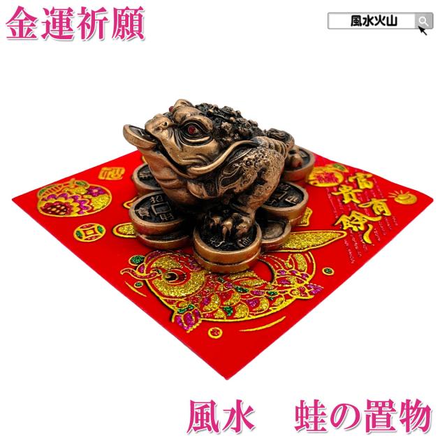 風水 カエルの置物 蛙置物 金色の置物 金運 金運アップグッズ 金運グッズ 風水グッズ 風水インテリア 開運グッズ 開運 運気アップ 2026 ( 樹脂製 金銭蛙ミニ 招財進宝敷物付き)