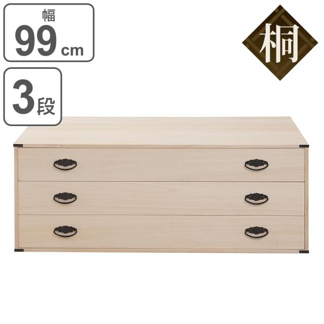 桐たんす 着物用 浅型 3段 桐タンス 台輪あり 日本製 幅99cm ( 桐箪笥 収納 桐チェスト 国産 完成品 桐 たんす タンス 箪笥 積み重ね 桐衣装箱 着物収納 衣類収納 チェスト 天然木 )