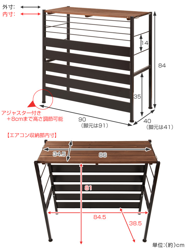 室外機収納部内寸:約幅84.5×奥行38.5×高さ81cm