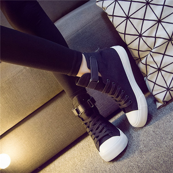 スニーカー レディース ハイカット ローヒール カジュアルシューズ 厚底スニーカー 黒 白 スポーツシューズ 夏春秋 厚底 レースアップ