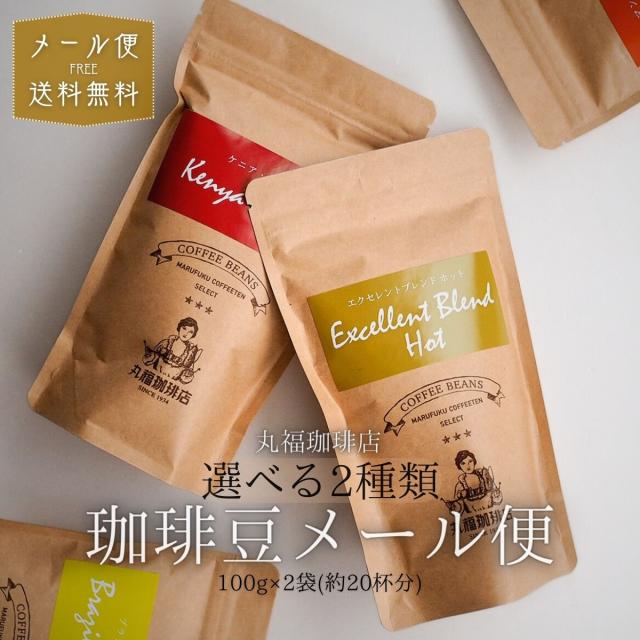 丸福珈琲店 選べる2種 お試し コーヒー豆 100g×2銘柄 ポスト投函 メール便 送料無料 ブラジル モカ他