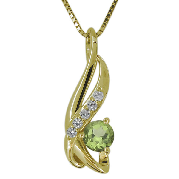 8月誕生石ペリドットを使用した18金製の、エレガントなデザインレディースネックレス(ペンダント)です。