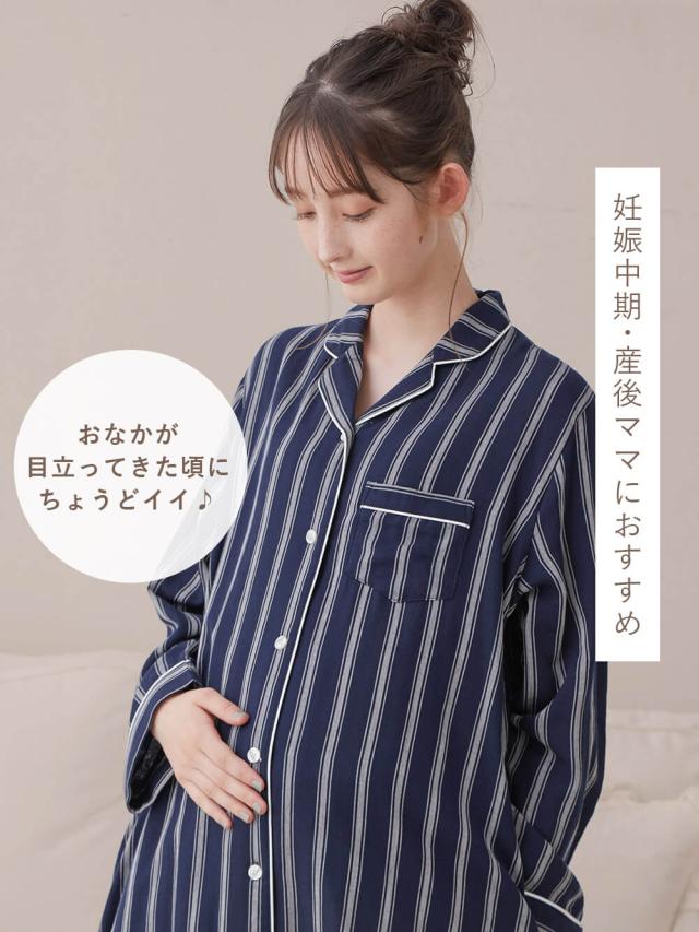 パジャマ マタニティ 前開き 授乳服 服入院 産前 産後 パンツ付 ストライプ ダブルガーゼ マタニティパジャマ 長袖 長そで 妊婦服 エンジェリーベ ANGELIEBE
