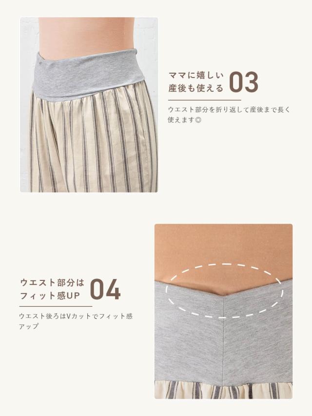 ・セットのレギンスは伸縮性に富んだベア天竺が妊娠初期〜産後の変化するお腹にやさしくフィット