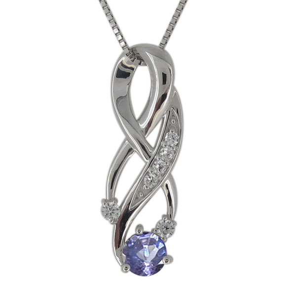 12月誕生石タンザナイトを使用したプラチナ製の、流れ星のような美しい曲線が、エレガントなネックレス(ペンダント)です。