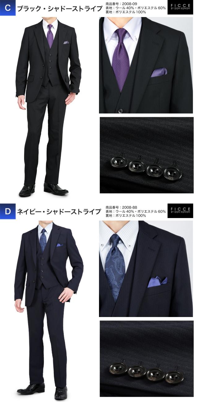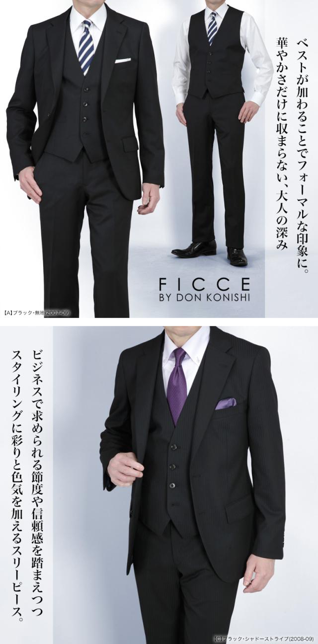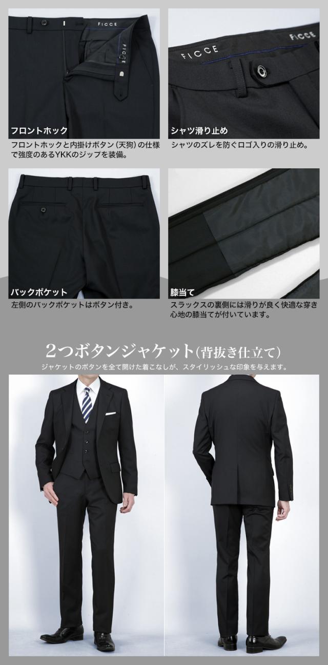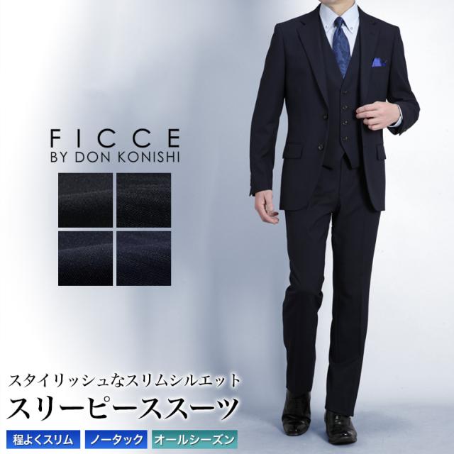 FICCE ブランド スリーピース スーツ メンズ スリム スリムフィット 2つボタン ジレ ベスト付 ノータック ローライズパンツ 春夏秋冬 オールシーズン オシャレ 結婚式 披露宴 ビジネス