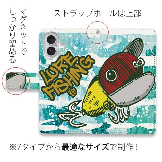スマホケース 手帳型 カード収納 マグネット iPhone17 Pro Max iPhone Air iPhone16e iPhone16 Pro Max 16 Plus 15 Pro Max Xperia 10 VII Galaxy AQUOS ARROWS Pixel10 XL 釣り 魚 ルアー 釣りざんまい 送料無料 ありそでなさそなクローラー