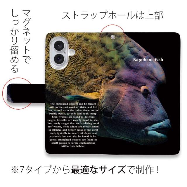 スマホケース 手帳型 カード収納 マグネット iPhone17 Pro Max iPhone Air iPhone16e iPhone16 Pro Max 16 Plus 15 Pro Max Xperia 10 VII Galaxy AQUOS ARROWS Pixel10 XL 釣り 魚 ルアー ナポレオンフィッシュ