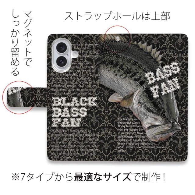 スマホケース 手帳型 カード収納 マグネット iPhone17 Pro Max iPhone Air iPhone16e iPhone16 Pro Max 16 Plus 15 Pro Max Xperia 10 VII Galaxy AQUOS ARROWS Pixel10 XL 釣り 魚 ルアー ブラックバス