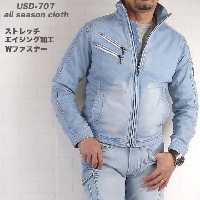 イーブンリバー 作業着 デニム ストレッチ ストレッチ デニムジャケット USD707 オールシーズン EVENRIVER 長袖ジャンパー ブルゾン 作業服 作業着 上着 USD-707