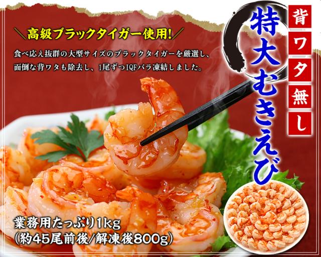 エビ 海老 高級 ブラックタイガー 使用!背ワタなし 大型むきえび 1kg(約45尾前後/解凍後800g) エビ バーベキュー BBQ e_bt