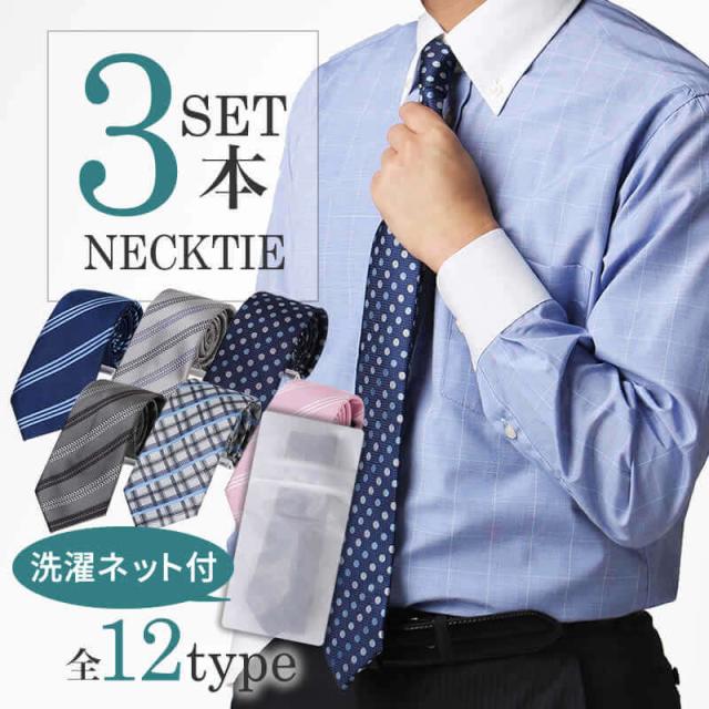 ネクタイ 3本 セット Aタイプ おしゃれ ウォッシャブル 洗濯ネット付き 洗濯可 メール便で送料無料 oth-ux-ne-1462-3fix 無地 ストライプ チェック ドット 白 ブルー ピンク 黒 フォーマル 結婚式 父の日
