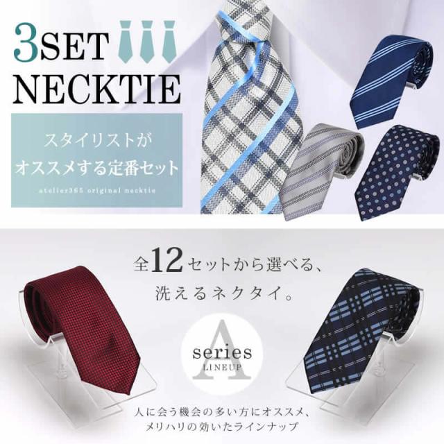 洗えるネクタイシリーズ「Aタイプ」3本セット全12種類
