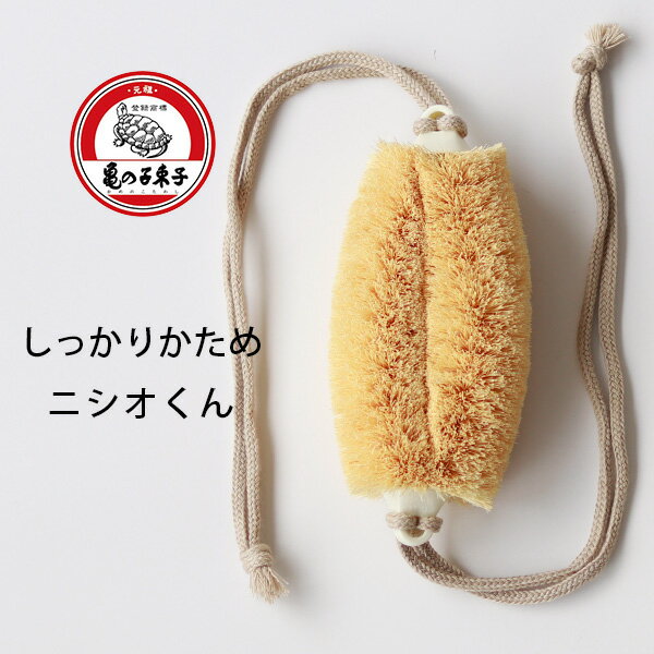 亀の子たわしの「紐付きボディたわし」(かたい)/健康たわし(ホワイトパーム)ニシオくん【日本製 亀の子束子 西尾商店 健康束子 ボディタワシ ボディケア 天然素材 麻 シュロ パーム 父の日】