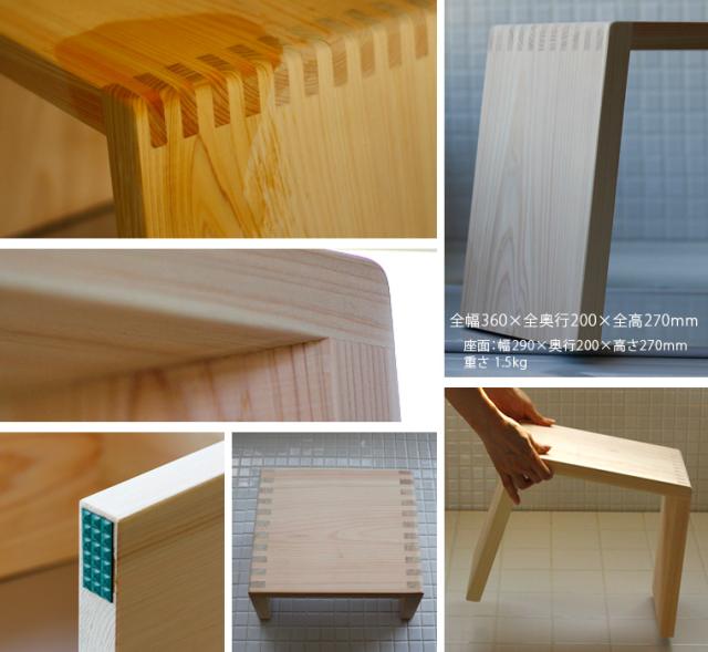 滑らかな肌触りのいい桧がとっても気持ちのいい座面、角がとれ丁寧な処理がされた作りの良さ。