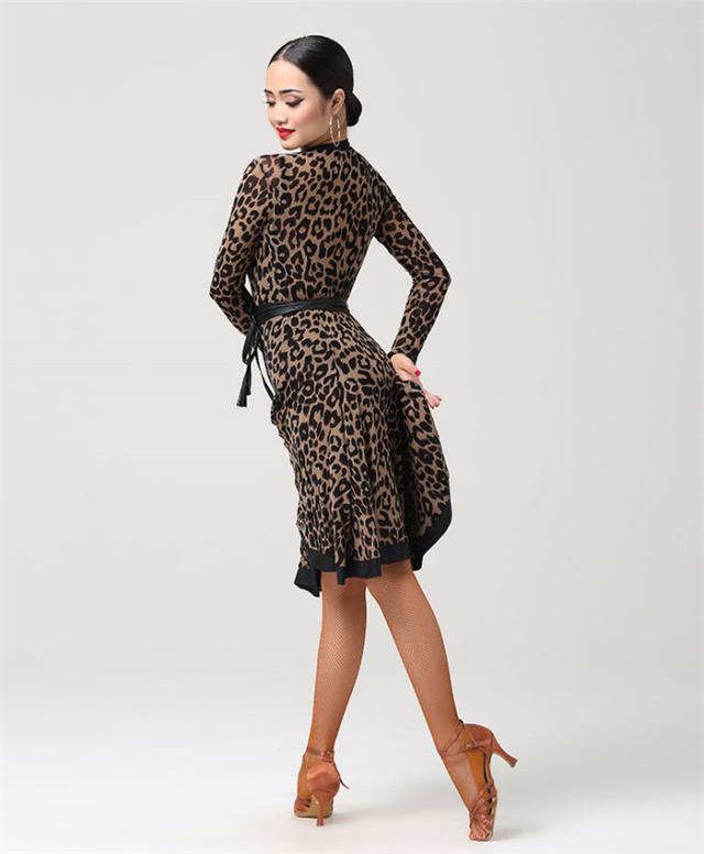 【送料無料】ラテンダンス 演技服 ワンピース スタンダード タンゴ服 ヒョウ柄 黒 モダン ワルツ 社交ダンス衣装 パーティー用 ステージ衣装