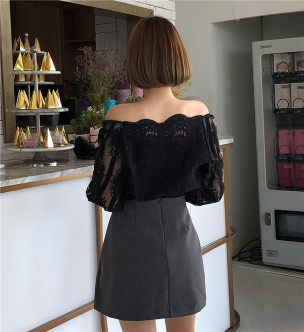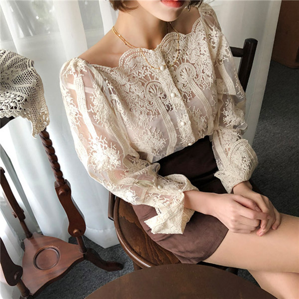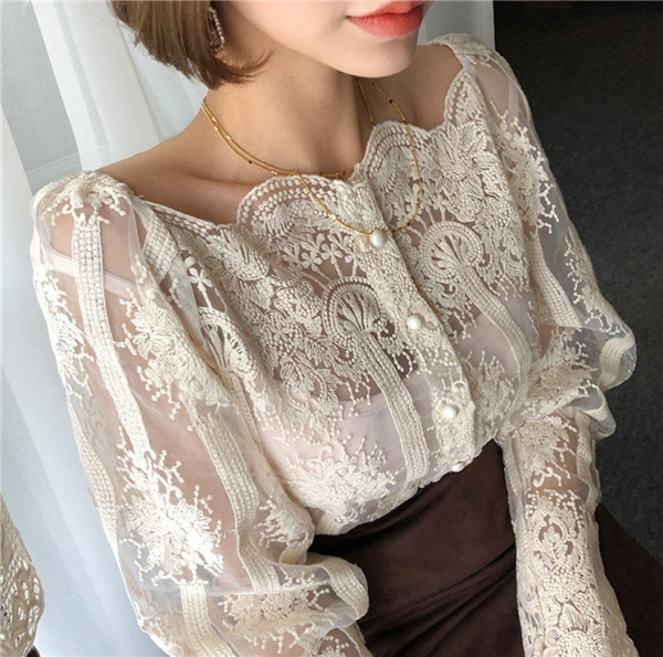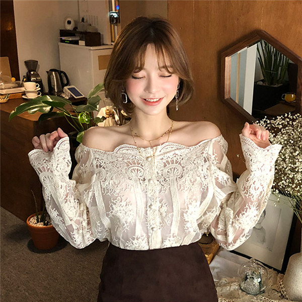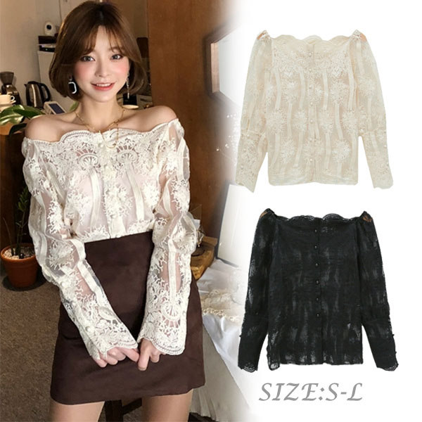 メ便送料無料 ブラウス ボートネック レース ブラウス トップス シャツ レディース チュールレース パフスリーブ 長袖 オフィス 春夏