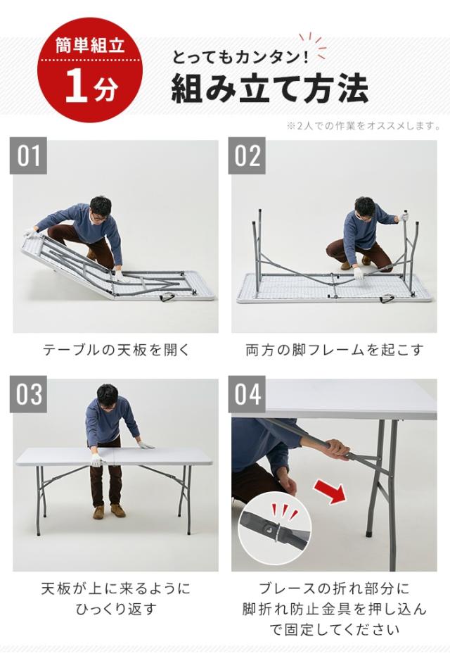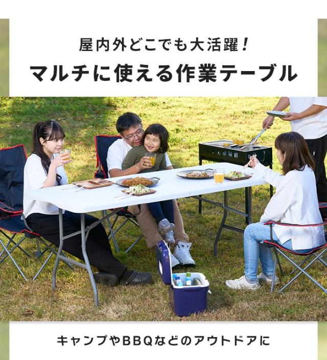 【値下げ】 折りたたみテーブル 作業台 ワークテーブル 幅180cm 強化プラスチック 軽量 丈夫 耐荷重100kg 持ち手付 折り畳み アウトドア キャンプ BBQ DIY 園芸 ホワイト